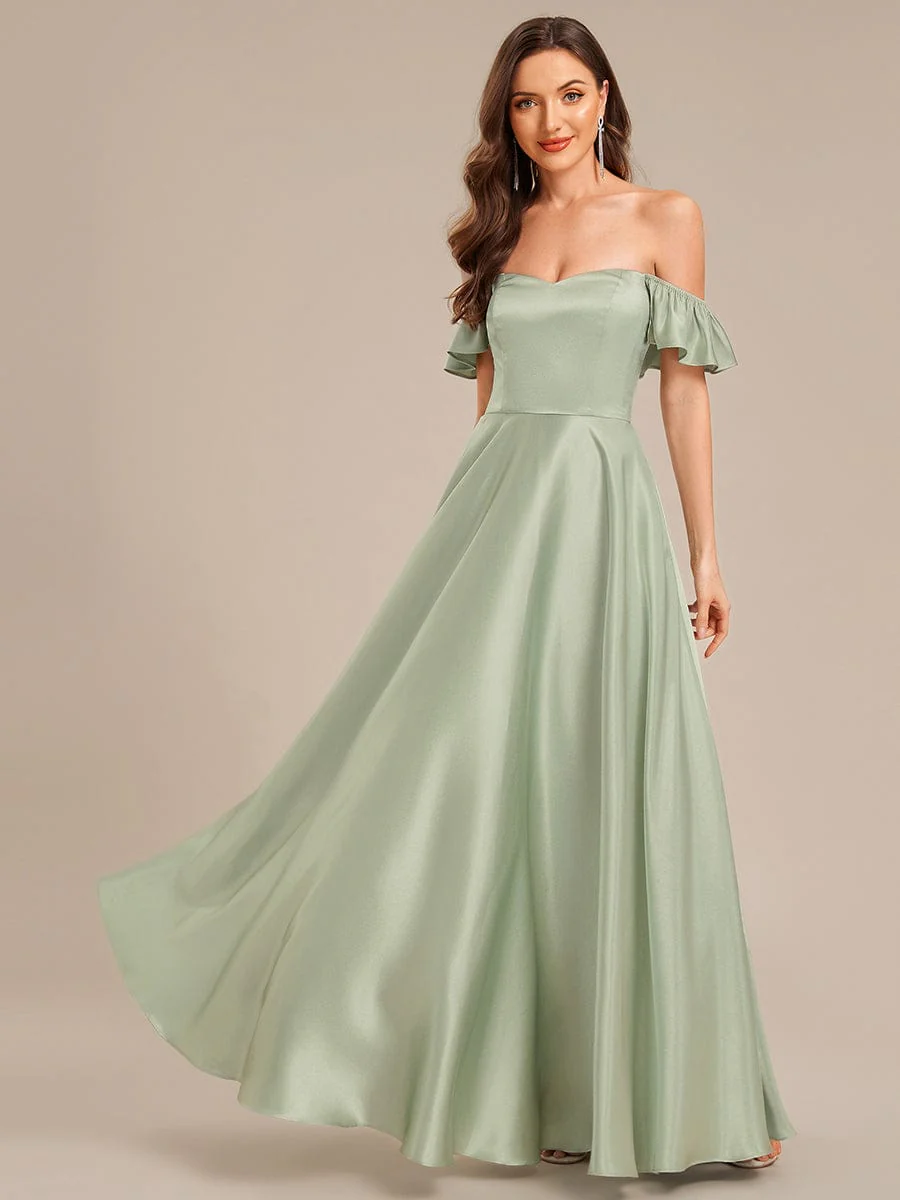 ever ALVARA|Back Tie Satin Ruffle Sleeve Formal Dress